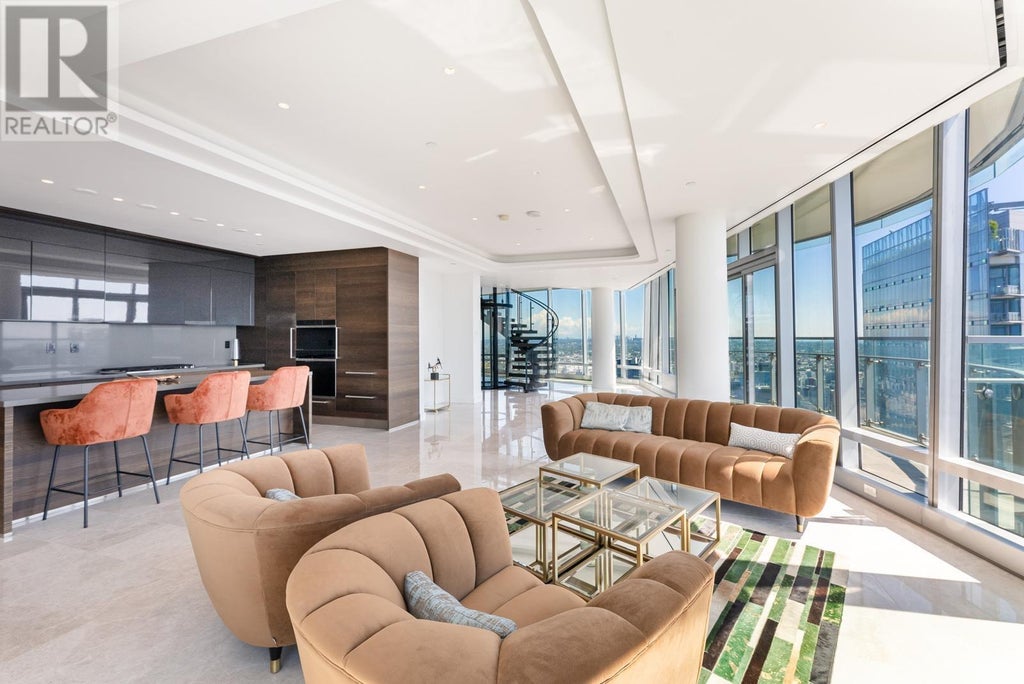 Perched on the 68th floor of one of Vancouver's most iconic architectural landmarks, Penthouse 3 is a masterpiece in the sky. Designed by Steve Leung Design Group, the interiors of the penthouse are elegantly crafted and inspired by the element of Earth. South-facing with stunning views of English Bay, Stanley Park, North Shore Mtns. Private rooftop terrace boasts a custom Whirlpool hot tub that comfortably seats 4-6 people - perfect for unwinding while taking in the sunset vibes! (id:6289)